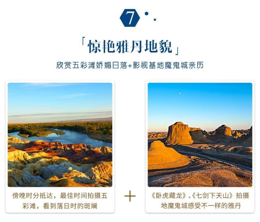 景点安排:乌尔禾魔鬼城 留够时间拍照留恋。 魔鬼城时间非常充裕 油城克拉玛依也很有特色,特别安排入住一晚。