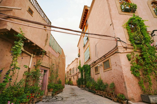 新疆伊犁特克斯县特克斯镇博斯坦街南端,由哈萨克族、汉族、回族、维吾尔族、蒙古族、柯尔克孜族等6个民族组成,最大限度地保留现有的民居院落,在居住功能、邻里结构不变的基础上,逐步向旅游服务转型,形成民宿、美食民族特色产品为一体的休闲街区,形成了集乌孙文化、丝路文化、草原文化、易经文化于一体的多民族文化风情街区,现已成为特克斯县一道亮丽的风景线。